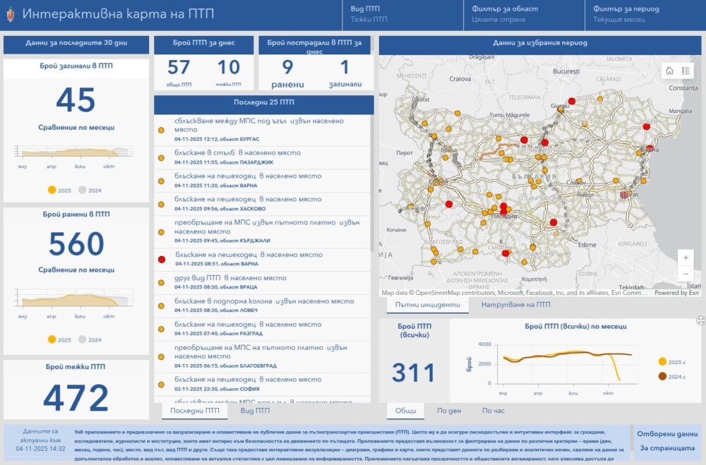 Два месеца по-късно Мартин писа, че получава отказ от МВР за последните данни. Малко по-късно сподели комуникацията с тях. Накратко МВР отказва да изпрати същата справка от последните месеци, тъй като работила върху собствена карта. Тази карта виждате долу. Представлява табло, което дава статистика и информация с последните случаи. Има филтри за райони, видове ПТП-та и периоди.