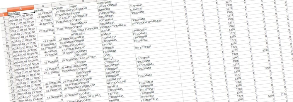 Това означава, че по някаква причина отворените сега данни от МВР съдържат доста по-малко случаи от тези, които са предоставили на Мартин. Подробно вглеждане в разликите би помогнало да се разбере какво липсва, дали е имало дублиране преди или просто са изчистили грешки. Положителното поне е, че данните на МВР съдържат повече параметри и са публикували описание на номенклатурите и какво означават. Липсва номенклатура за crashtype, но съм я извадил от кода им във файла METADATA. Данните на Черна писта са публикувани на страницата. Ако някой открие различията и има обяснение кои катастрофи липсват и защо, ще се радвам да сподели в коментарите.